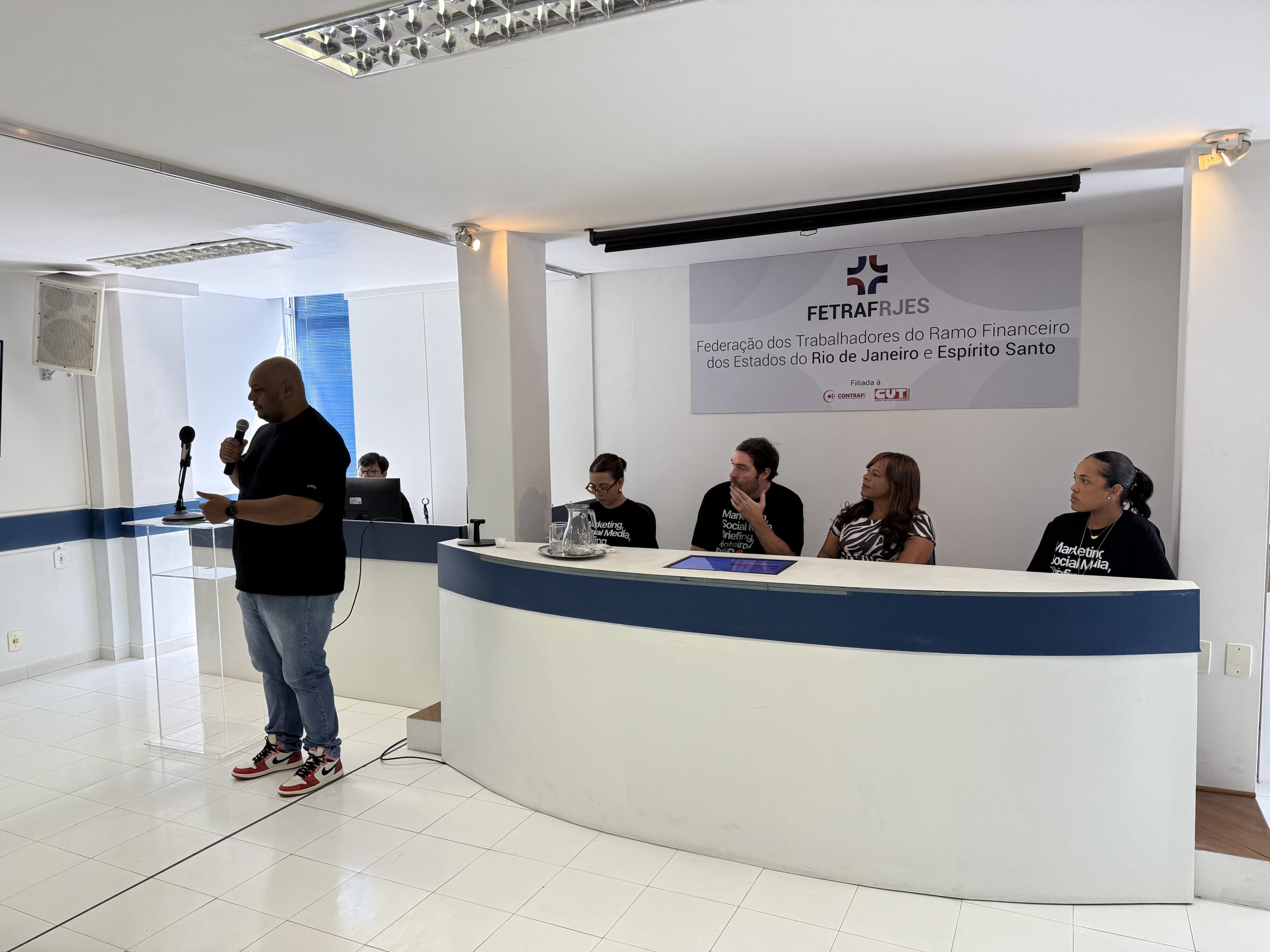 Em parceria com a Confederação Nacional dos Trabalhadores do Ramo Financeiro (Contraf-CUT), a Federação dos Trabalhadores do Ramo Financeiro dos Estados do Rio de Janeiro e Espírito Santo (Fetraf RJ/ES) realizou nesta quinta-feira (27/11), um Workshop de Comunicação para os dirigentes sindicais de seus Sindicatos filiados.