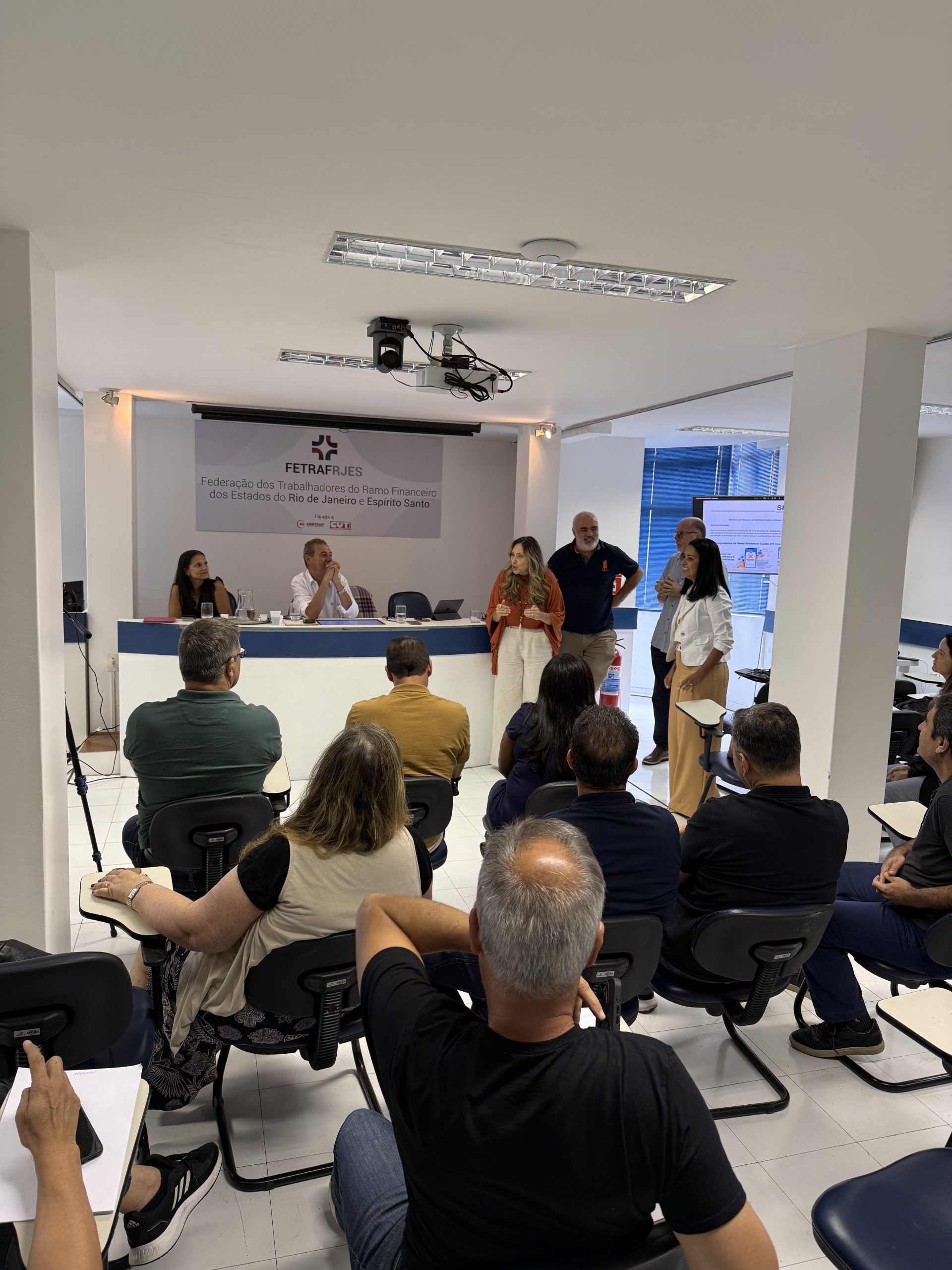 O encontro ocorreu no auditório da entidade, no centro do Rio de Janeiro, e contou com representantes dos Sindicatos dos Bancários de Angra dos Reis e Região, Baixada Fluminense, Espírito Santo, Itaperuna e Região, Macaé e Região, Nova Friburgo e Região e Três Rios e Região.