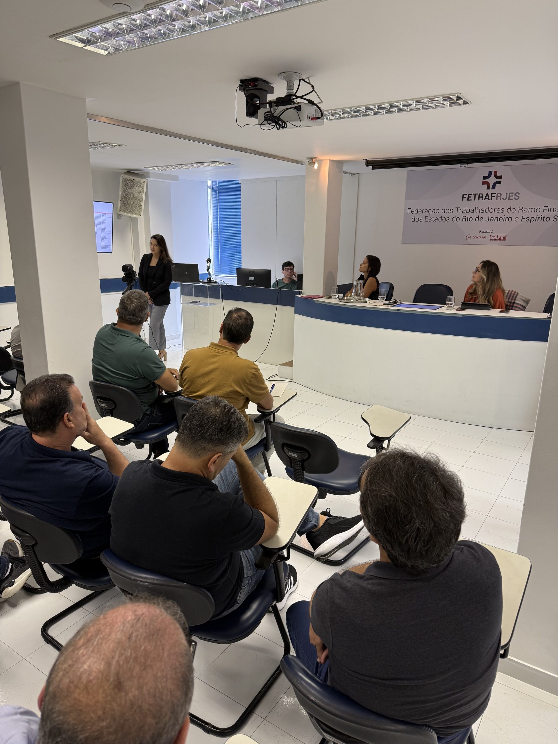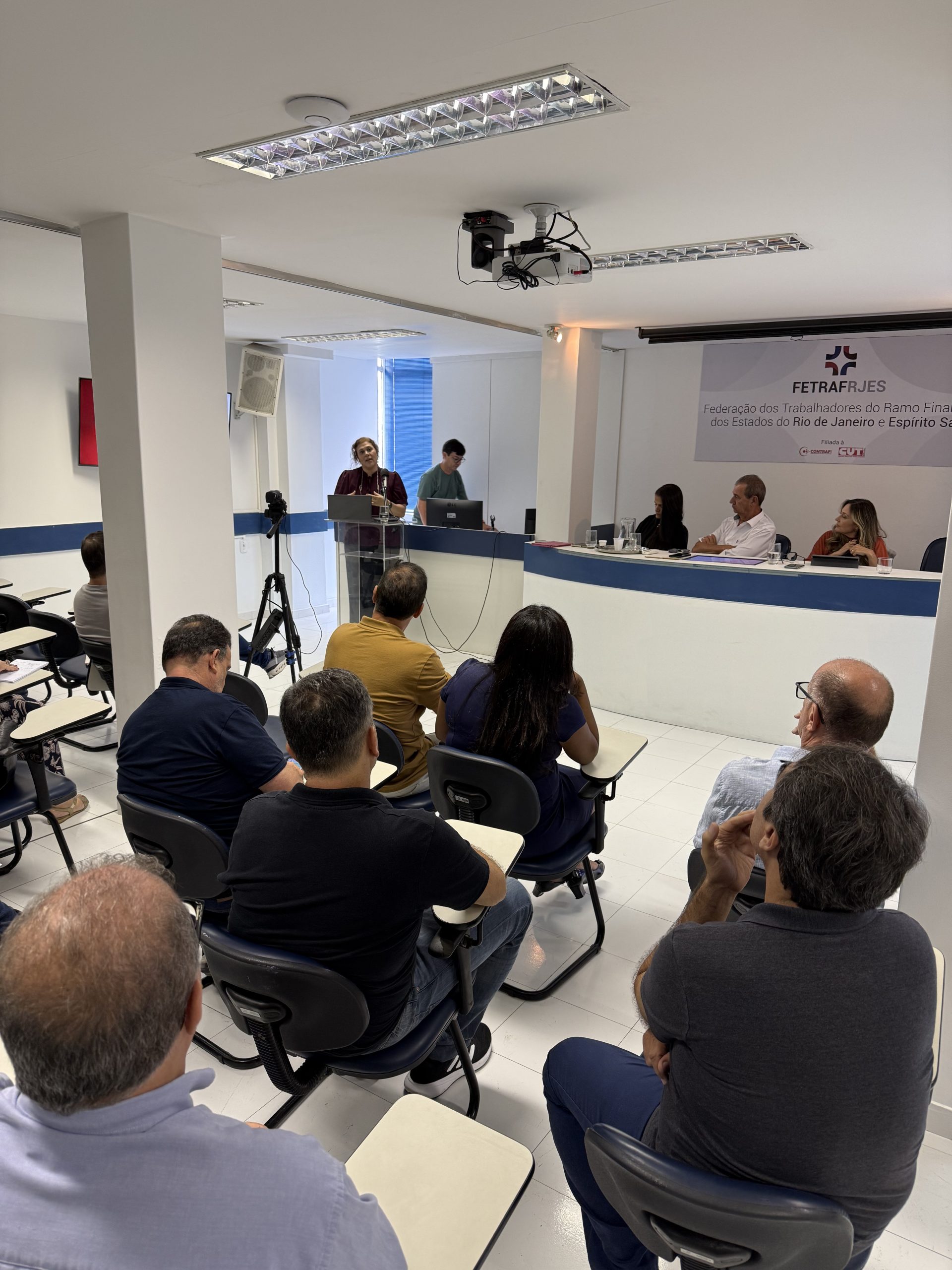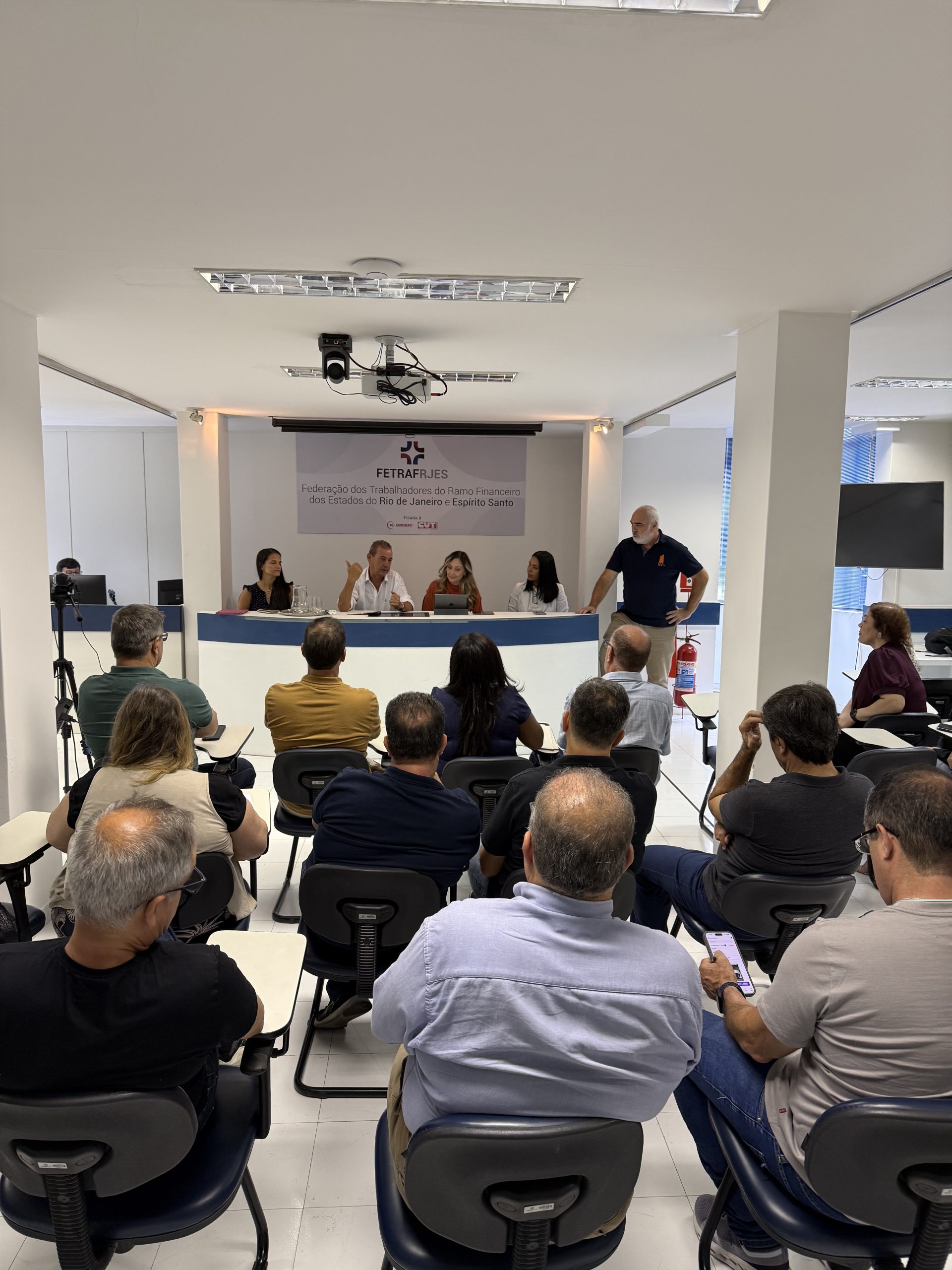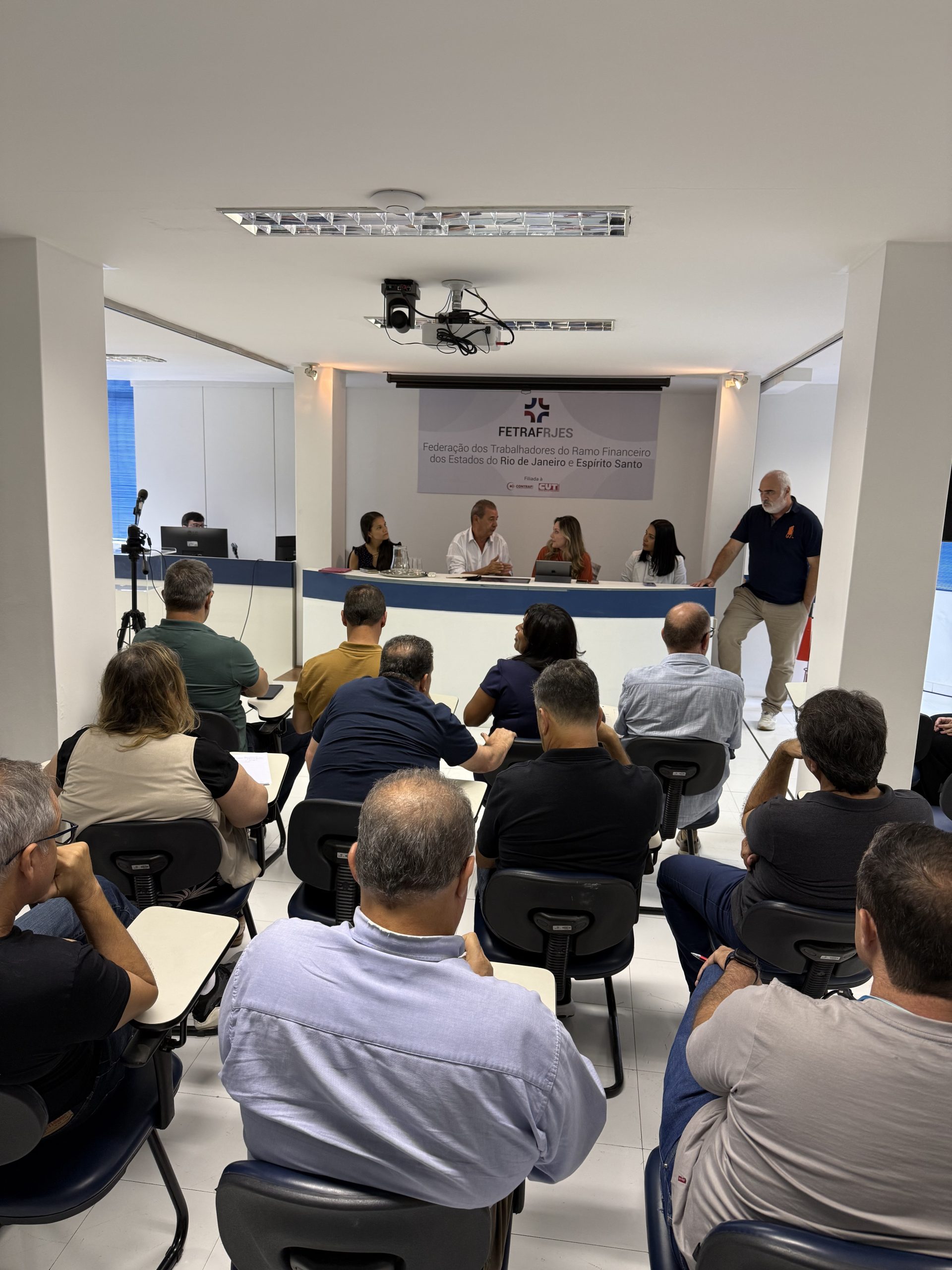 O encontro ocorreu no auditório da entidade, no centro do Rio de Janeiro, e contou com representantes dos Sindicatos dos Bancários de Angra dos Reis e Região, Baixada Fluminense, Espírito Santo, Itaperuna e Região, Macaé e Região, Nova Friburgo e Região e Três Rios e Região.