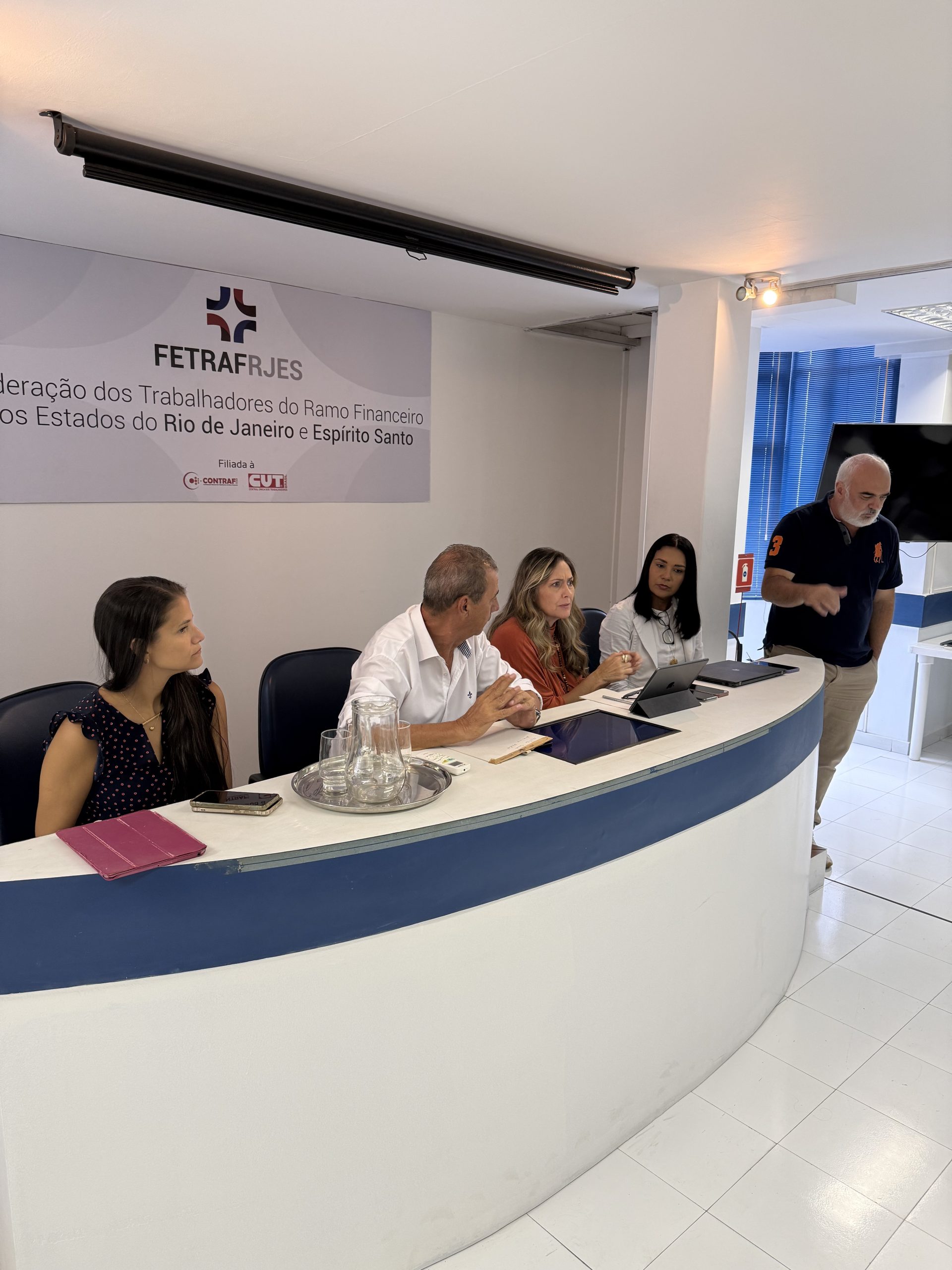 Nesta quinta-feira (19/3), a Federação dos Trabalhadores do Ramo Financeiro dos Estados do Rio de Janeiro e Espírito Santo (Fetraf RJ/ES), se reuniu com representantes do Banco Bradesco, para debater sobre Plano de Saúde e Dental.