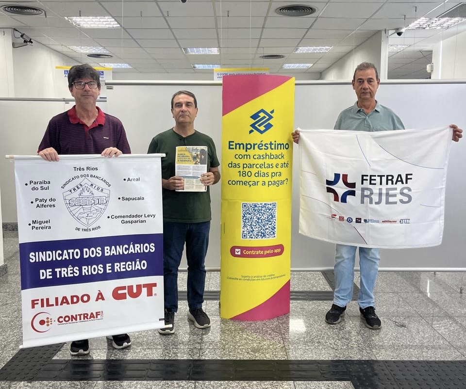 Nesta quarta-feira, 5 de novembro, Sindicatos da base da Federação dos Trabalhadores do Ramo Financeiro dos Estados do Rio de Janeiro e Espírito Santo (Fetraf RJ/ES), e em todo o país, realizaram o Dia Nacional de Luta dos Funcionários e Funcionárias do Banco do Brasil – Contra as Metas Abusivas e em Defesa da Saúde.