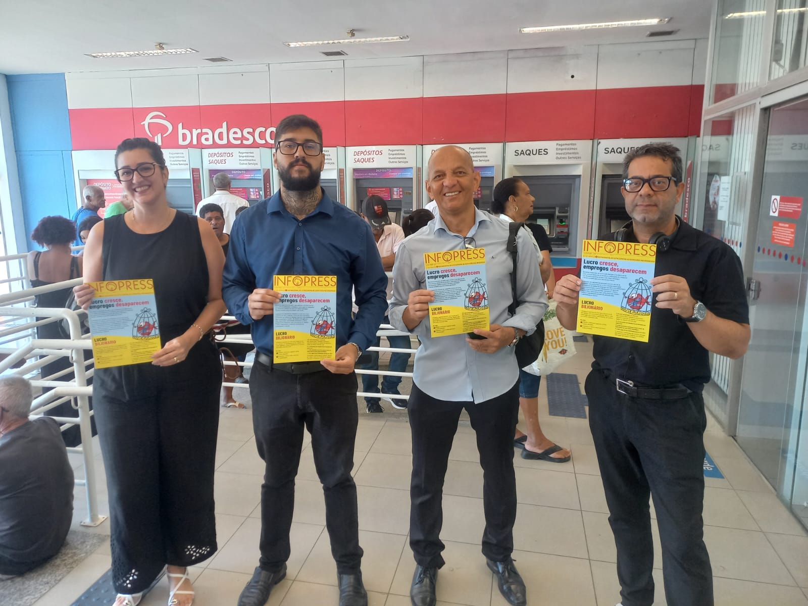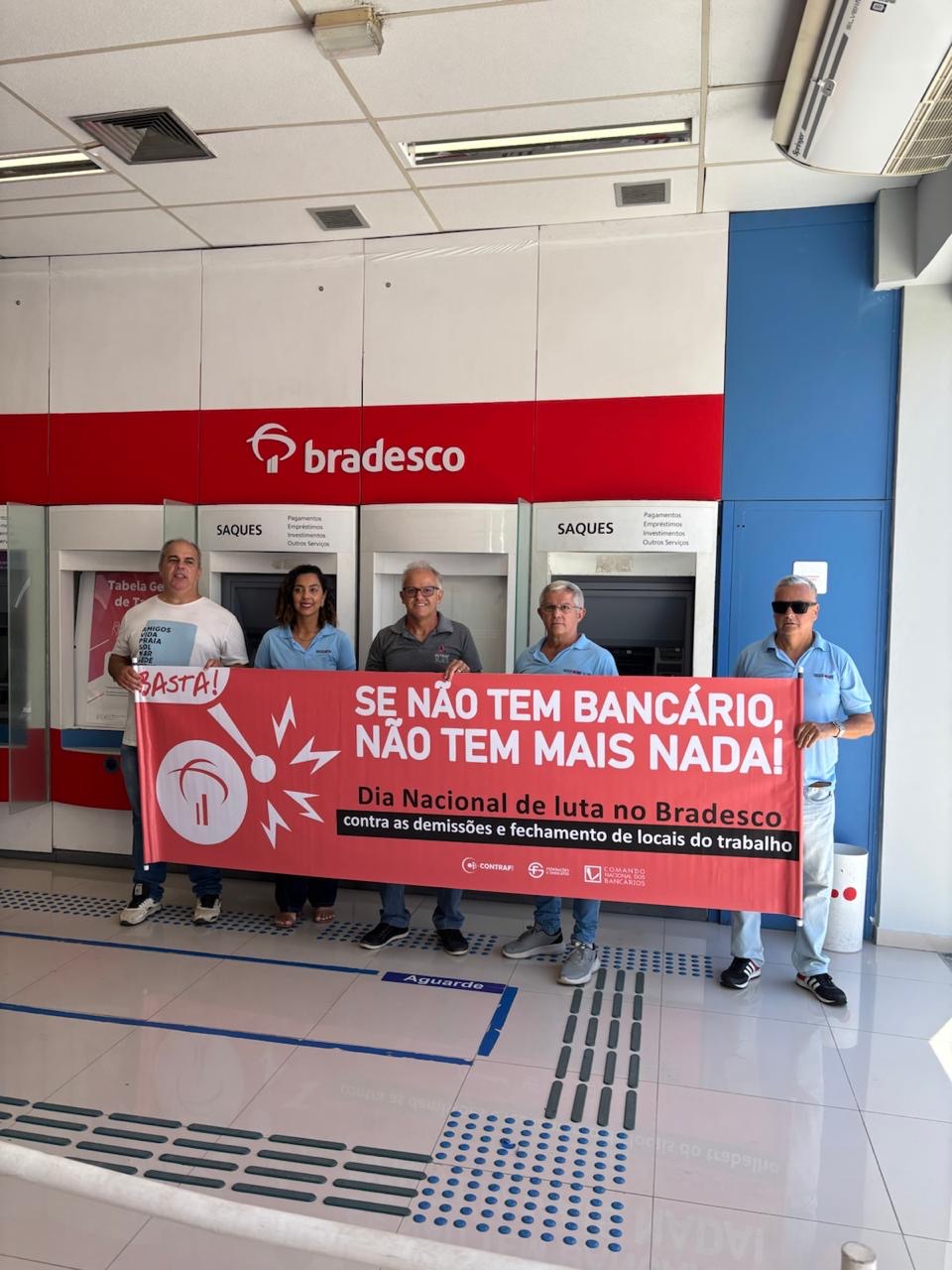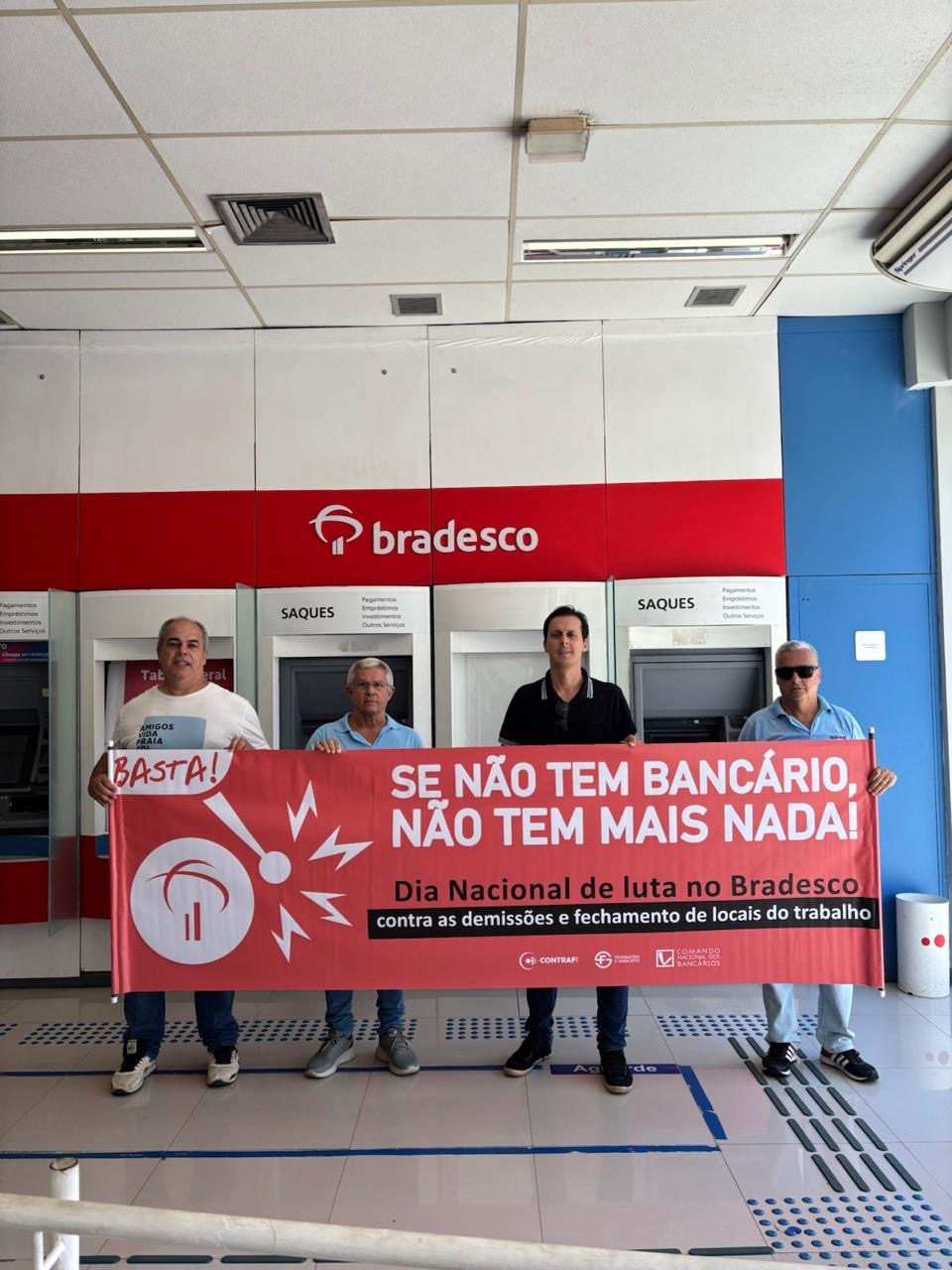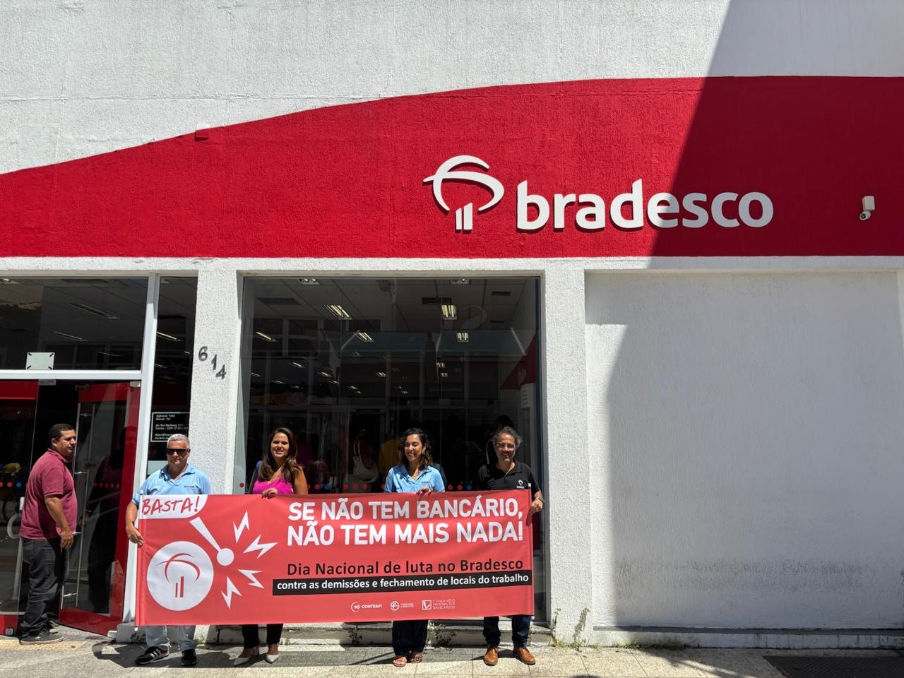 No Dia Nacional de Luta contra as demissões no Bradesco, o foco foi denunciar a eliminação de postos de trabalho promovida pelo banco.